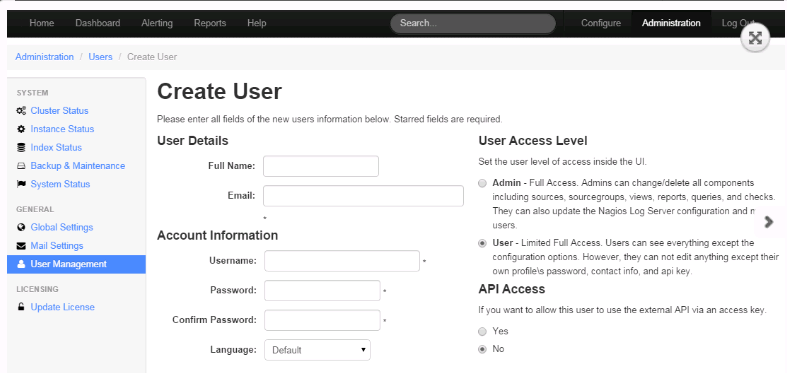 Log Server peut être utilisé par plusieurs users en même, ce qui permet à votre équipe de travailler plus efficacement ensemble. Les admins peuvent ajouter, modifier et supprimer des utilisateurs, ainsi qu’octroyer différents droits aux utilisateurs a leurs guises.